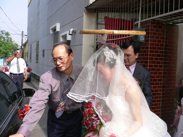 在一些禮俗之後,王爸爸就牽著女兒走出來啦!