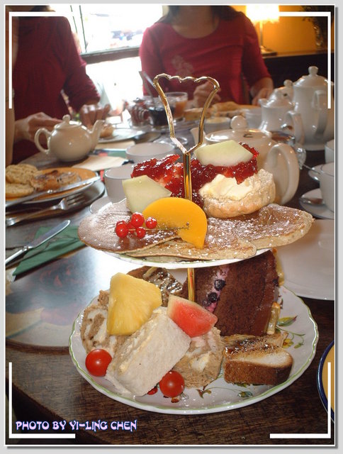 這就是泰迪熊口中的豪華又幸福的下午茶(FULL TEA)。這樣一份下午茶,還有一壺茶或咖啡,要價為英鎊12.5鎊。還真是不便宜呀!但是,這一份下午茶可以給二到三個人吃啦!所以,還是個可以接受的價錢囉!