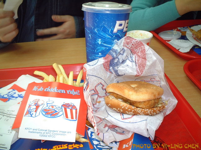 根據網路上背包客的建議,第一餐一定要到麥當勞或肯德雞用餐,因為這樣才可以把手上的大抄換成小抄囉!而離我所住的飯店最近的就是KFC啦!所以,這裡就成了我在埃及的第一餐囉!