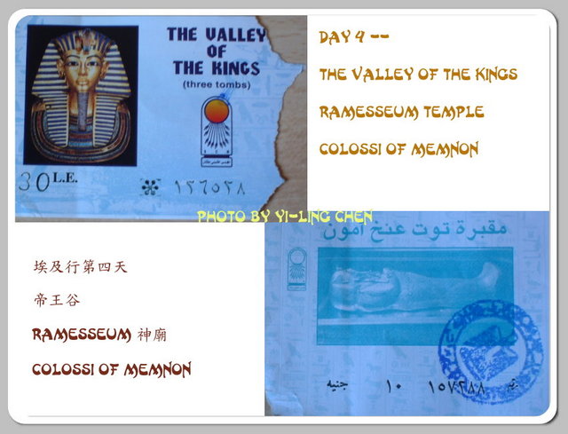 另外,帝王谷的門票一張可以看進入三個墳墓參觀,而且每進去一個,票上面就會被撕掉一角,這也就是為什麼我上頭那張票被撕得像狗啃的一樣呀!想再多個幾個就得再付錢囉!