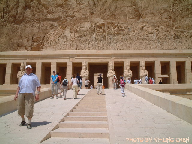 這可是很雄偉的神殿呀!因為,有三層喔!不過,這個神殿被古埃及人破壞滿多的,因為那時的人依被女人統治為恥,所以就大肆破壞她的畫像和所有刻有她的名字的地方。