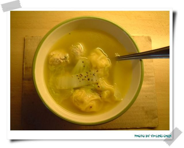 繼了上次親手包了餛飩煮了餛飩湯,結果沒拍到照片之後,這幾天考完試又想喝餛飩湯的泰迪熊又包餛飩啦!而這一次,我可是有拍照存證的啦!而且,還加了丸子喔!