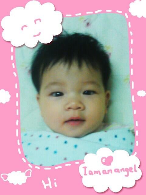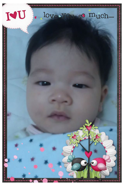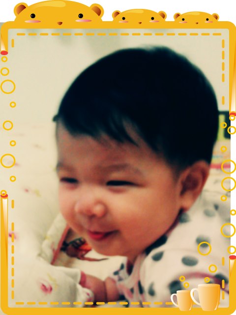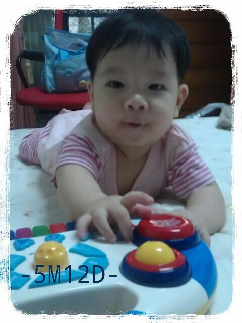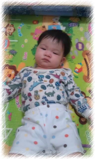 【5M18D】前一大在保母家跌傷了,臉上有小小烏青。但是,寶貝很勇敢喔!這幾天都乖乖的,沒有因為痛痛而灰灰喔!