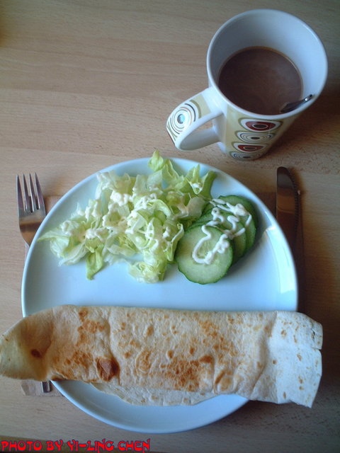 上面這個就是泰迪熊的情人節早餐。有生菜沙拉、起司蛋餅和一杯熱巧克力牛奶。看起來,真的很沒有什麼。但是,對在英國的泰迪熊來說,這已經算是很棒的早餐啦!因為,平常都只有土司或蛋餅而已。今天,可是加了生菜沙拉呀!